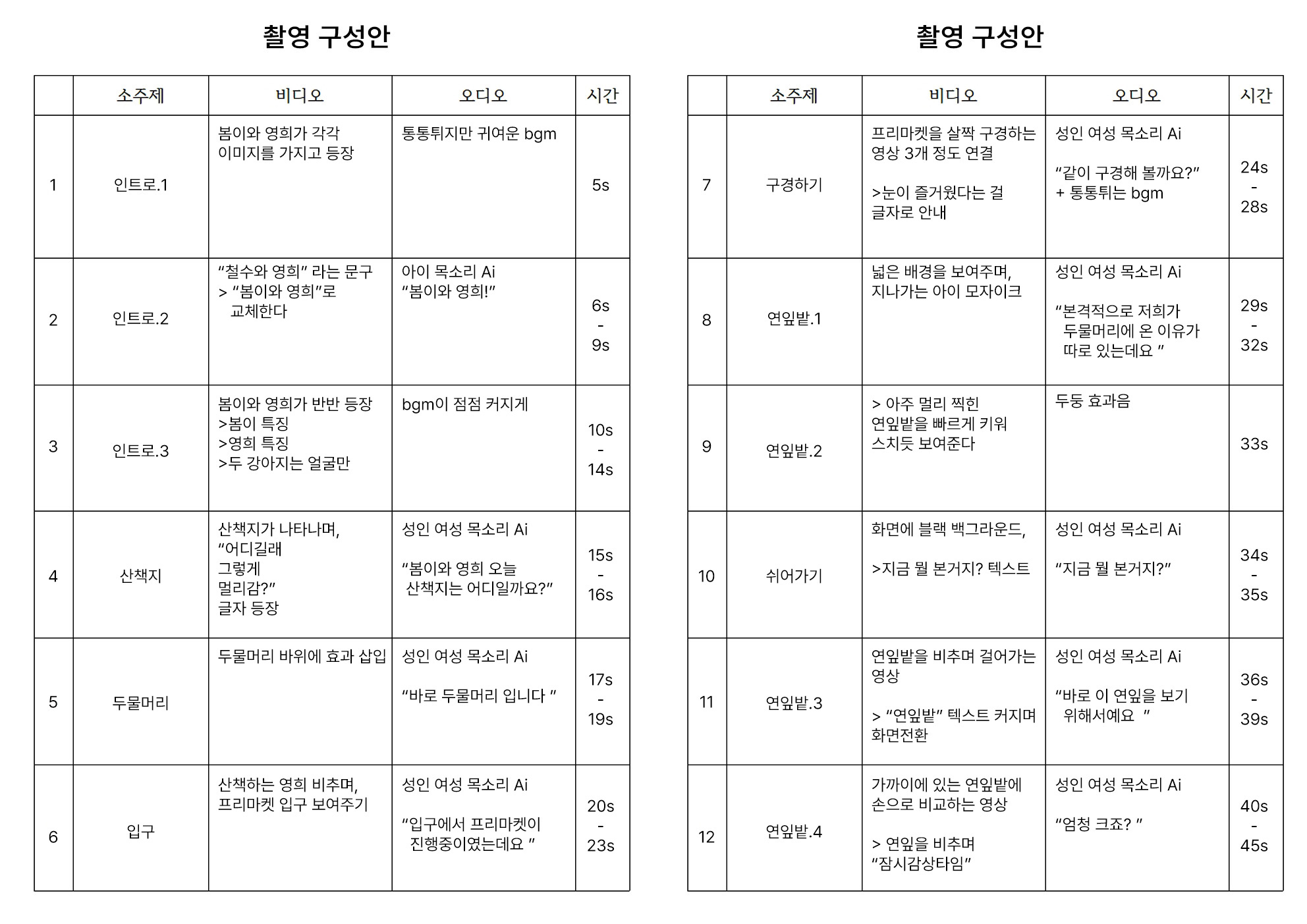 컨셉 : 강아지 2마리와 함께 브이로그 형태의 산책을 즐기는 영상